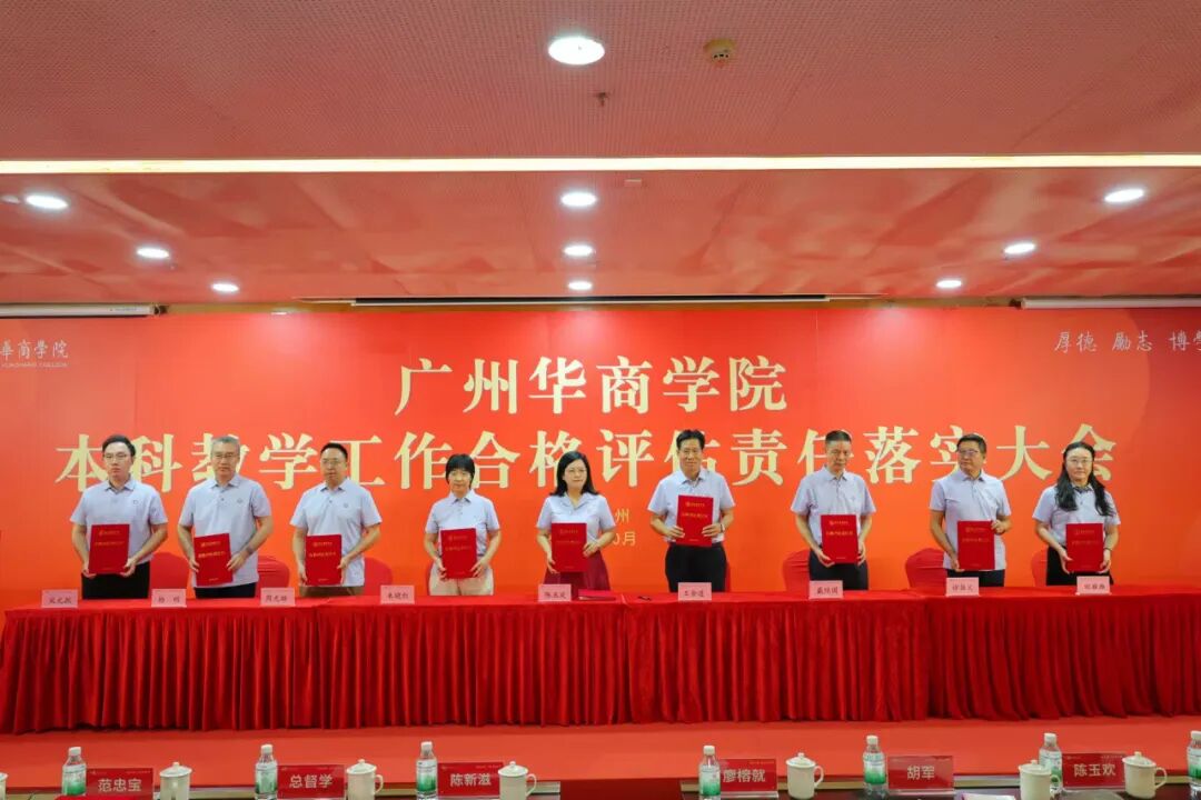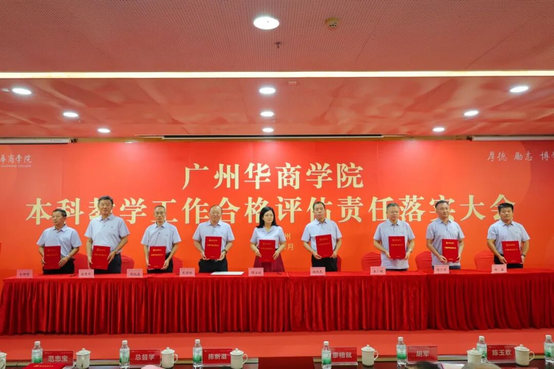 为进一步细化合格评估的标准和要求,有序推进我校本科教学工作合格评估,落实大会上,廖榕就董事长与全体校领导、党委书记陈玉欢与各二级学院及职能部门负责人分别签署本科教学工作合格评估责任书。全体教职员工表示将以满腔的热情和高度的责任心投身到迎评促建工作中,以最佳状态、最优成绩打赢本科教学工作合格评估攻坚战。