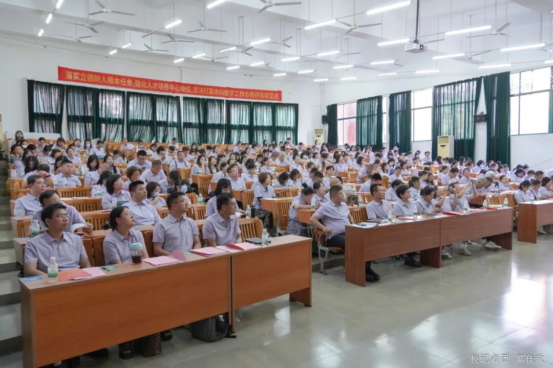 本科教学工作合格评估是对学校办学方向定位、教育教学成果、人才培养质量的真实检验,是当前我校面临的一次大考,是关乎学校长远发展、各项事业高质量发展的一件大事。自迎二十周年校庆 迎本科合格评估工作启动以来,学校上下团结一致、组织严密,凝聚智慧、彰显特色,纵深推进、全面覆盖,取得了阶段性成效。下一步,我校将以此次责任落实大会为契机,结合学校实际不断细化标准,进一步深化教学改革,集中力量补短板、强弱项、亮特色、显优势,切实达到“以评促建、以评促改、以评促管、评建结合、重在建设”的目的,以“功成不必在我,功成必定有我”的精神和担当围绕中心、服务大局,全面推进迎二十周年校庆 迎本科合格评估工作,聚焦、聚神、聚力,以更加饱满的热情、更加务实的行动确保各项任务落到实处,以优异的成绩迎接建校二十周年,以充足的信心迎接本科教学工作合格评估!