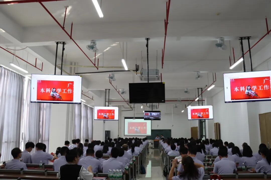 10月8日,我校以线上+线下的方式在两校区同步召开本科教学工作合格评估责任落实大会。主会场设在广州校区图书馆报告厅,广州校区分设七个分会场,肇庆校区同步设一个分会场。华商教育集团董事长廖榕就、学校董事会领导、学校顾问、特邀嘉宾、学校党政领导班子全体成员、校长助理、各二级学院及职能部门负责人主会场参会,全体教职员工分会场参会。会议由党委书记陈玉欢主持。